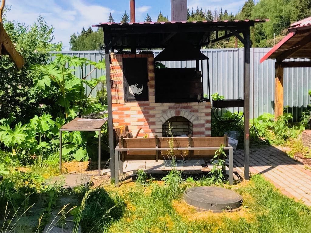На улице: - Мангальная и коптильня для приготовления вкусной еды, шампура и сетки -Выход в лес с живописным видом и качельками. - Место для парковки 4-5 авто перед домом, навес на 4-5 машины. - Крытая беседка на 20 - 25 чел. - Батут - Шезлонги - Большой ограждённый участок 40 соток -